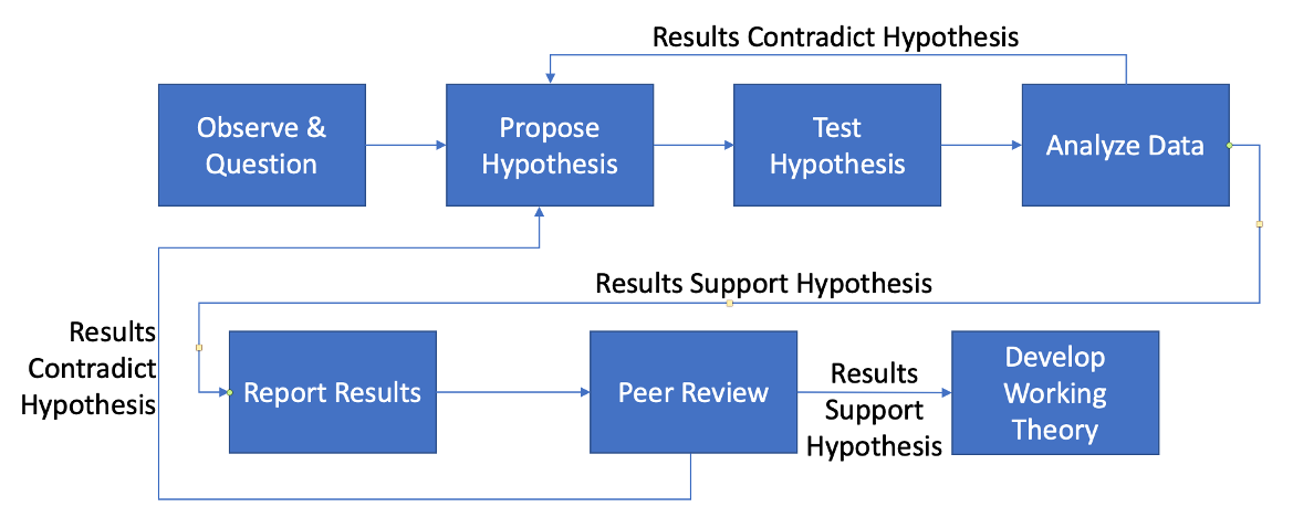 The process starts in the moment of observing something that raises a question. Something like, “I feel like I am unable to fully live out my religious beliefs. I wonder if it’s just me, or is this a pervasive issue in this country?” This would then lead someone to form a hypothesis of “Religion in America is under attack,” and then go about testing the hypothesis. If the testing produced data that contradicts the hypothesis, then one must conclude that the hypothesis is false, and formulate a new hypothesis that fits the observations from the test. If after repeated testing, a hypothesis persistently withstands scrutiny, one should feel free to adopt that hypothesis as a belief.